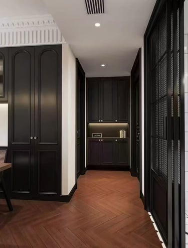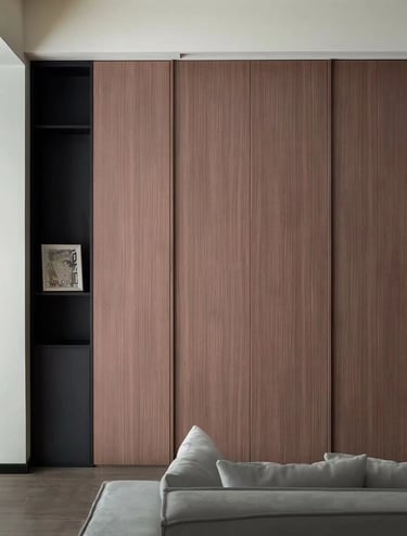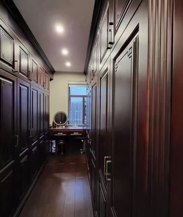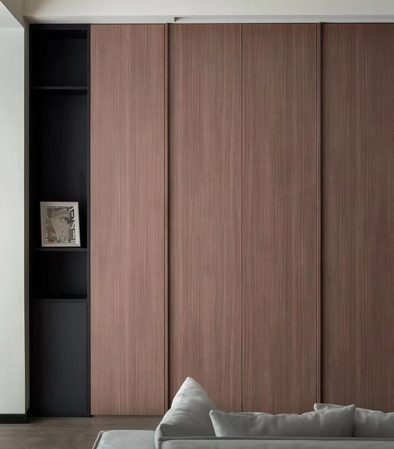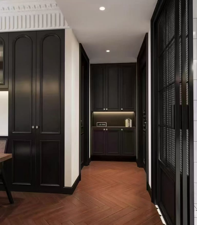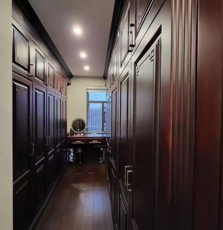 紋理優雅,顏色深沉(黑胡桃)或淺暖(白胡桃),適合做封閉式啞光漆或半開放漆; 硬度高且穩定性强,油漆後盡顯高端,常用於輕奢、新中式風格的書櫃、床頭櫃。